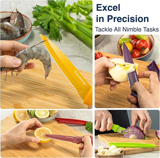 About This Powerful But Light-Weight Workhorse in Your Kitchen: With extra sharpness and precision, Gourmetop paring knife set of 4... Read more