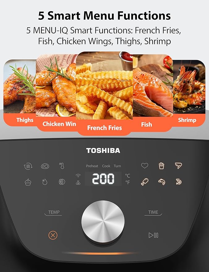 Toshiba 7.7QT Air Fryer, Family-Size for Quick and Easy Meals, 12 Preset Menus and Menu-IQ Function, 1°F Precision, 90% less fat, Double-sided Handles Easy Carrying