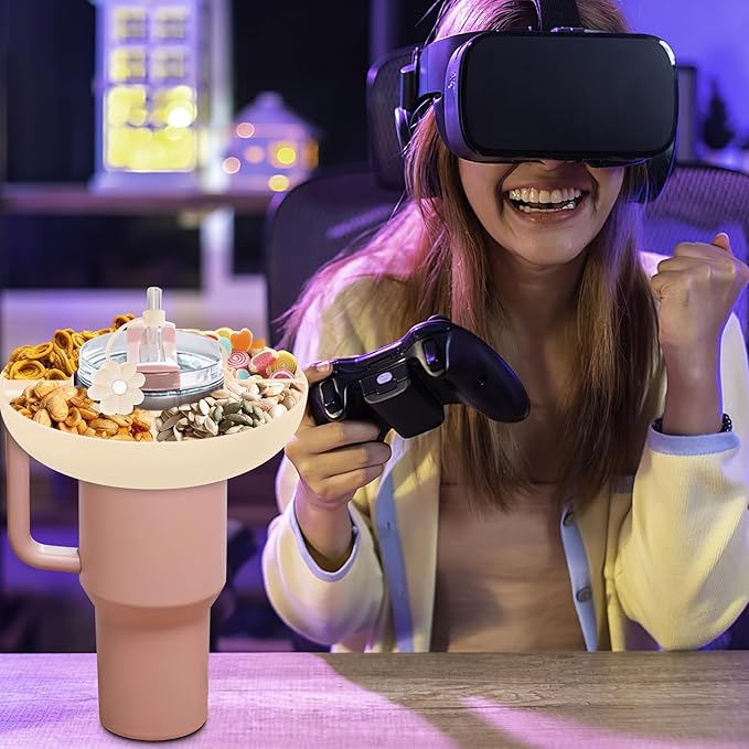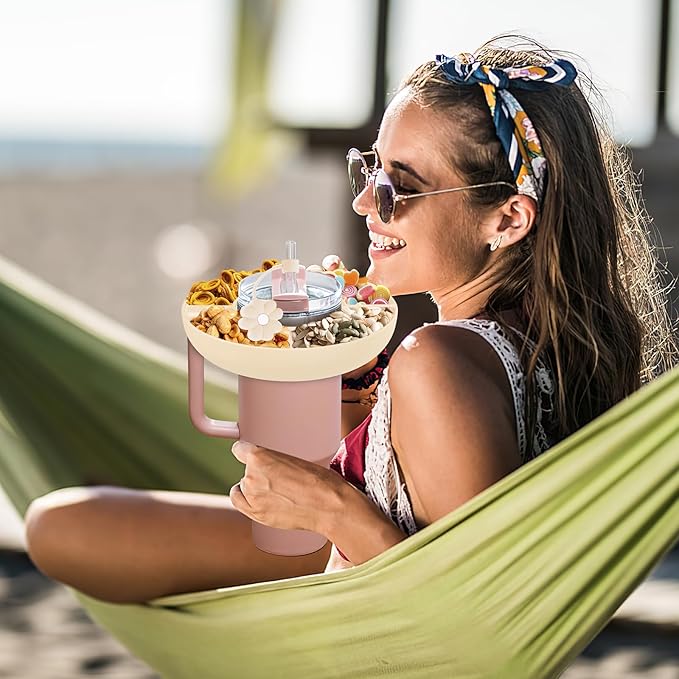 Snack Bowl for Stanley Cup 30 oz with Handle-Perfectly Compatible with Stanley Quencher H2.0 Tumbler 30 oz with Handle, Reusable Silicone Snack Tray, Stanley cup accessories (Cream Snack Bowl)