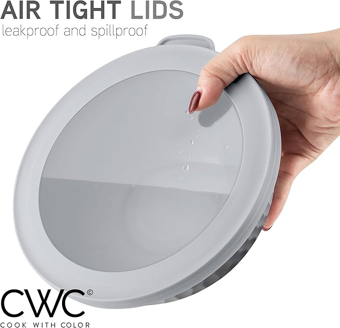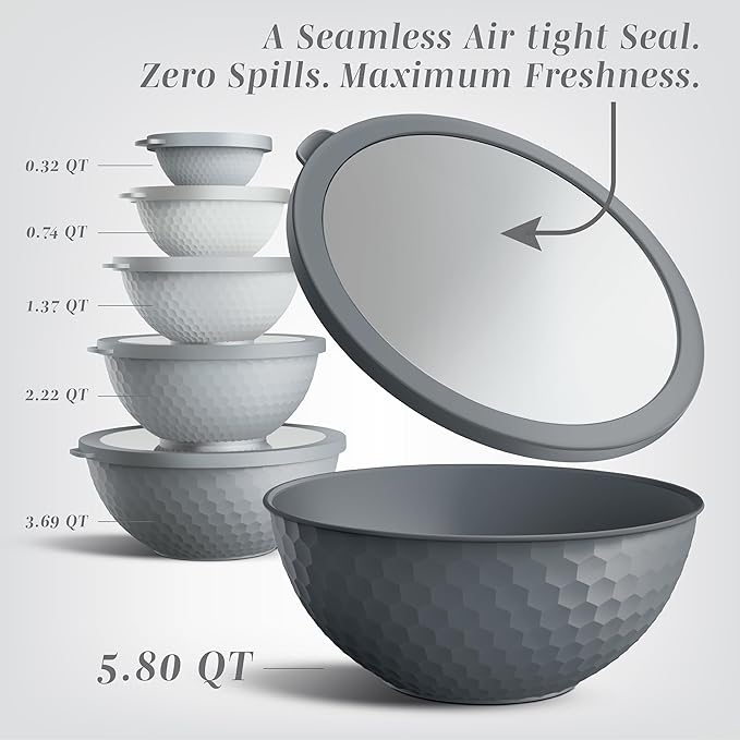 COOK WITH COLOR Mixing Bowls with Lids - 12 Piece Plastic Nesting Bowls Set includes 6 Prep Bowls and 6 Lids, Non Slip Bottom and Embossed Design - Microwave Safe (Grey)