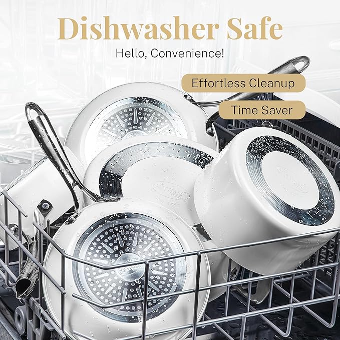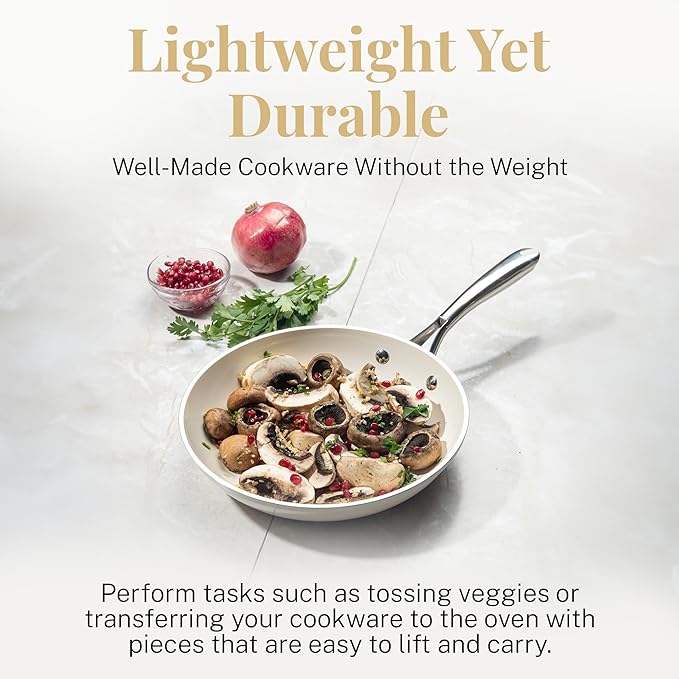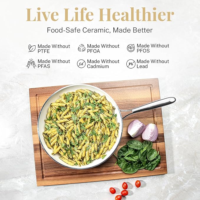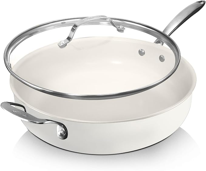 Gotham Steel 5.5 Qt Saute Pan with Lid - Nonstick Deep Frying Pan, 100% PFOA Free Ceramic, Dishwasher Safe, Cream White