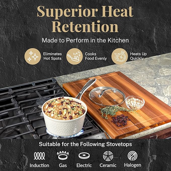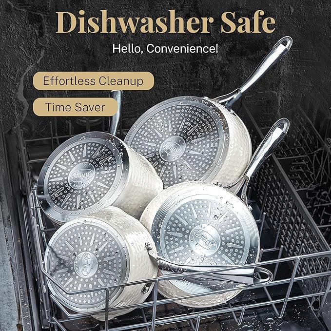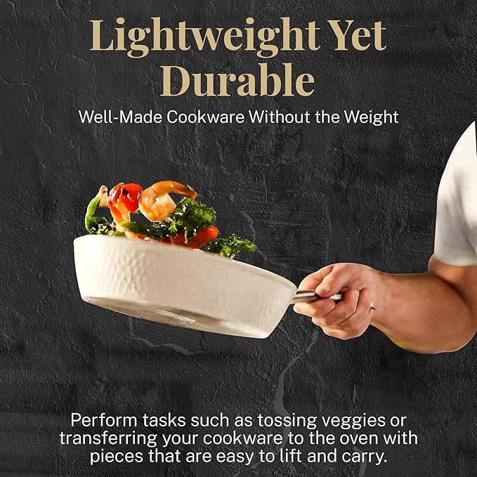 About This GOTHAM STEEL HAMMERED CREAM: The Gotham Steel Hammered Cream 15 Piece cookware set includes everything you need to... Read more