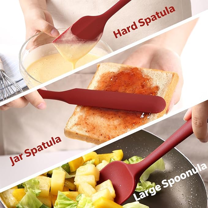 Wanbasion 5 Piece Premium Silicone Spatula Set Heat Resistant, Kitchen Spatula Set Dishwasher Safe for Nonstick Cookware Cooking Mixing Deep Red