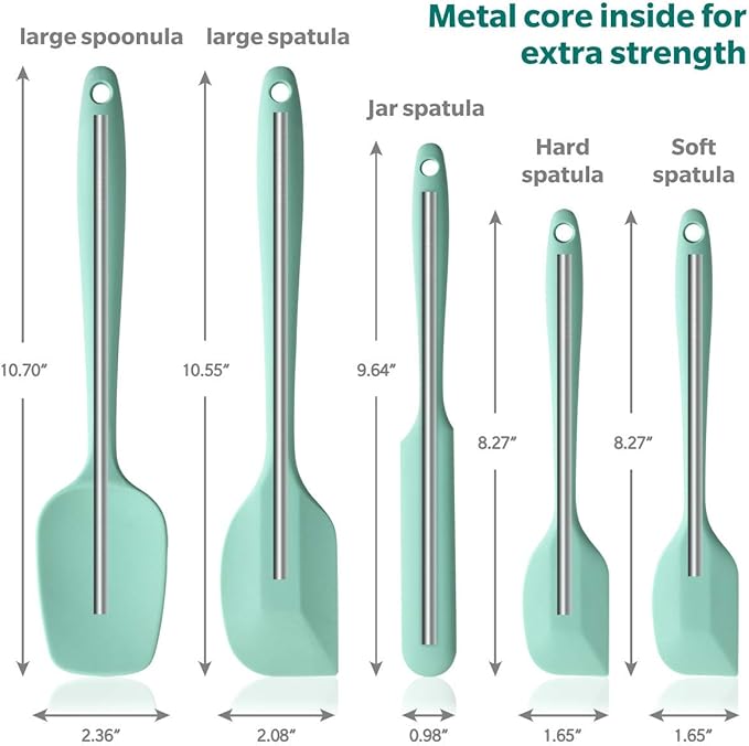 Wanbasion 5 Piece Premium Silicone Spatula Set Heat Resistant, Colorful Rubber Baking Spatula Set, Kitchen Spatula Set Dishwasher Safe for Nonstick Cookware Cooking Mixing Light Green