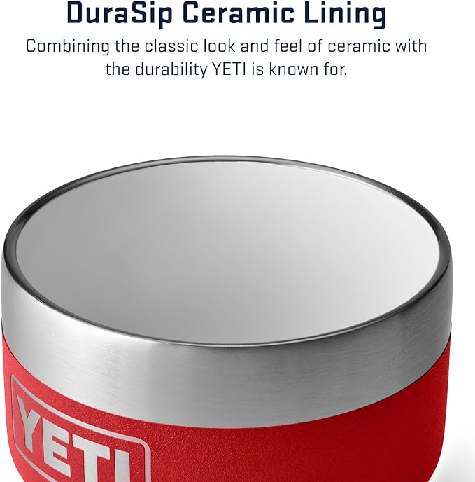 • DURASIP CERAMIC LINING - Combining the classic look and feel of ceramic with the durability YETI is known for, DuraSip Ceramic Lining is fused to 18/8 vacuum insulated stainless steel, making it tough enough to take tumbles and keep on sipping