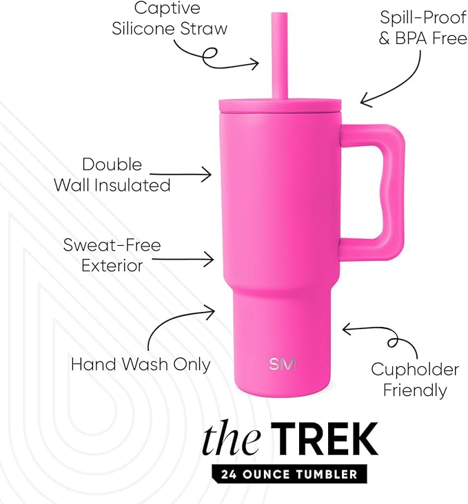 Simple Modern Kids 24 oz Tumbler with Handle and Silicone Straw Lid | Spill Proof and Leak Resistant | Reusable Stainless Steel Bottle | Gift for Kids Boys Girls | Trek Collection | Raspberry Vibes