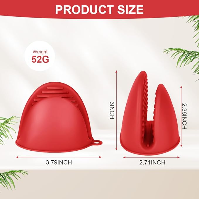 AUAUY 1 Pair Mini Silicone Oven Mitts, Heat Resistant Pot Holders Mitts, Cute Oven Pinch Grip Gloves, Small Potholders for Kitchen, Air Fryer Mitts Pair for Cooking, Baking and Grilling (Red)