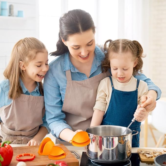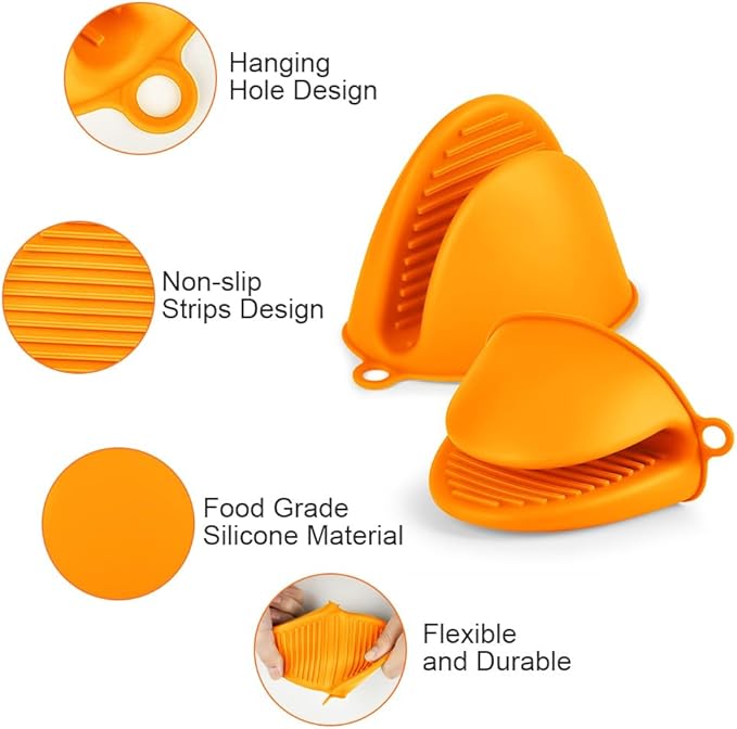 AUAUY 1 Pair Mini Silicone Oven Mitts, Heat Resistant Pot Holders Mitts, Cute Oven Pinch Grip Gloves, Small Potholders for Kitchen, Air Fryer Mitts Pair for Cooking, Baking and Grilling (Orange)