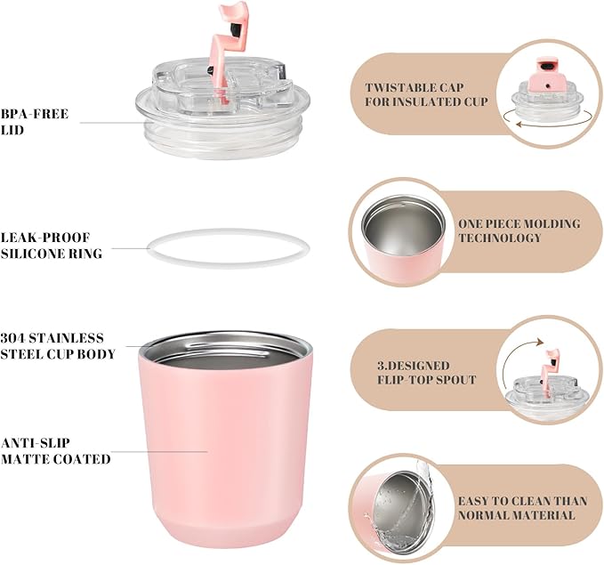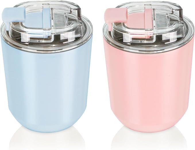 Puraville 2 Pack Insulated Tumblers with Lid, 10 oz Travel Coffee Mug Stainless Steel Vacuum Cup, Leak Proof Double Walled Coffee Tumbler for Iced and Hot Drinks, Pink and Light Blue