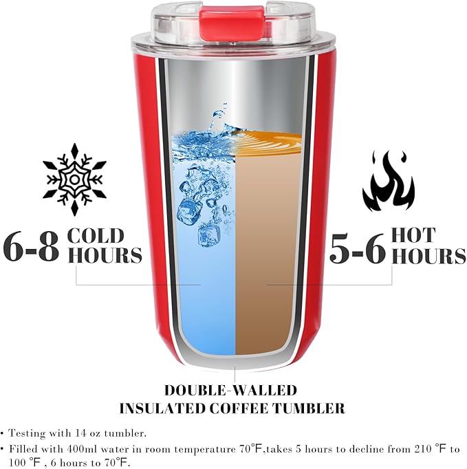 Puraville 2 Pack Insulated Tumblers with Lid, 14 oz Travel Coffee Mug Stainless Steel Vacuum Cup, Leak Proof Double Walled Coffee Tumbler for Iced and Hot Drinks, Klein Blue and Red