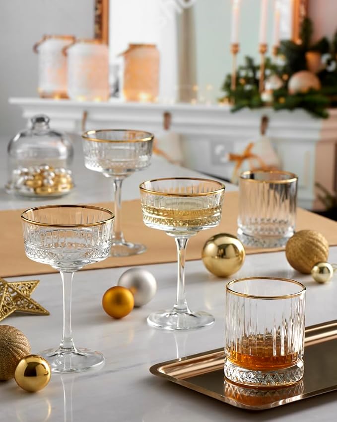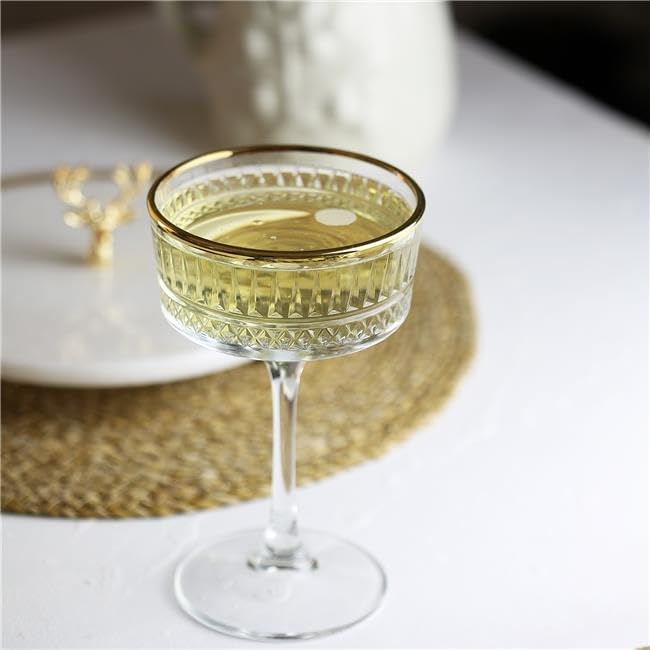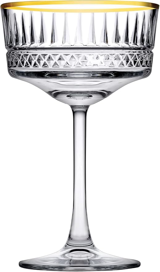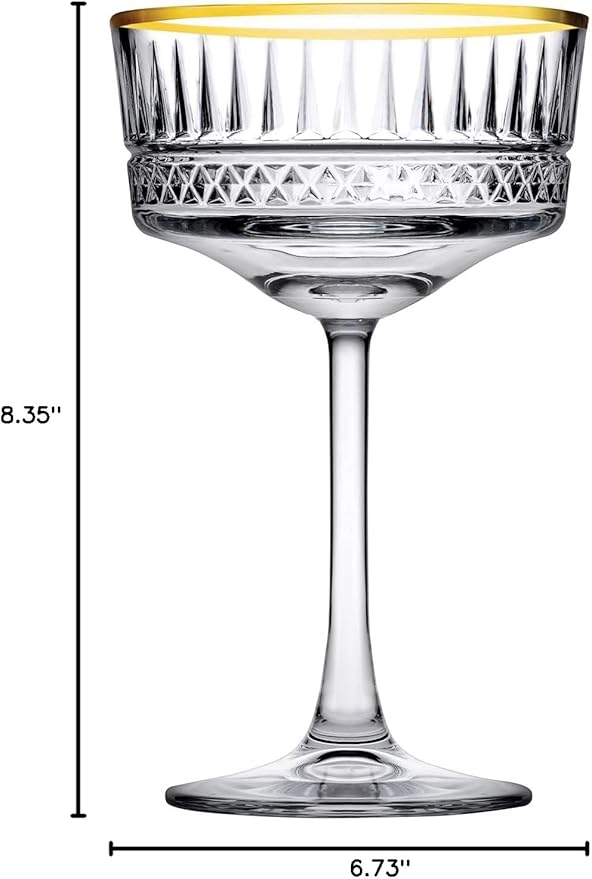 Pasabahce Vintage Golden Touch Coupe Glasses Set Of 4 - Exclusive Champagne, Cocktail, Martini, Wine Glasses - Long Stem Glassware - 8.8 oz - Perfect for Parties, Gifts, Housewarming, Weddings