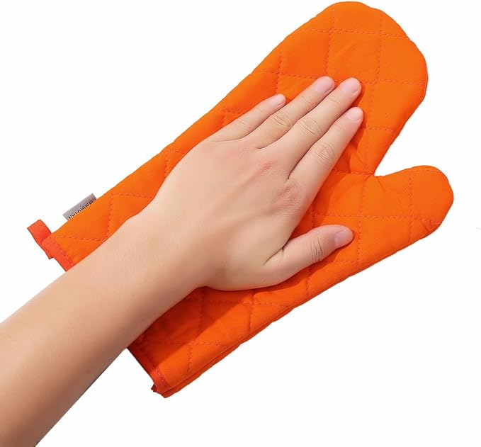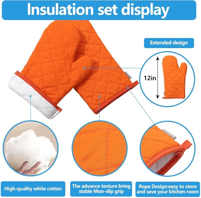Oven Mitts and Pot Holders 4 pcs Set,High Heat Resistant 500 Degree Extra Thicken Long Kitchen Cotton Oven Glove for Cooking (12 Inch,Orange)…