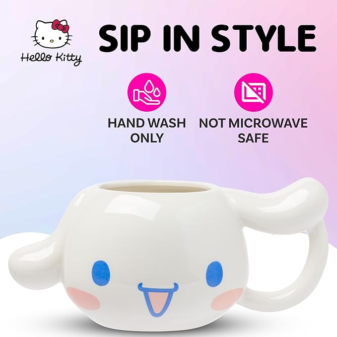 Silver Buffalo Sanrio Hello Kitty and Friends Cinnamoroll Ceramic 3D Sculpted Mug, 20 Ounces