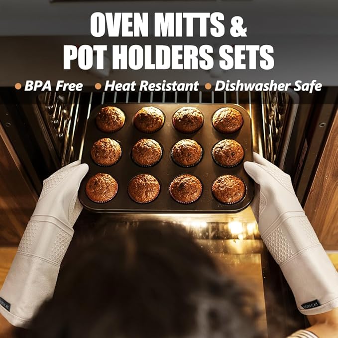 Rorecay Oven Mitts and Pot Holders Sets 6pcs, Extra Long Kitchen Silicone Oven Gloves High Heat Resistant 500 Degrees Non-Slip Potholders Hot Pads for Baking Cooking, Milkshake