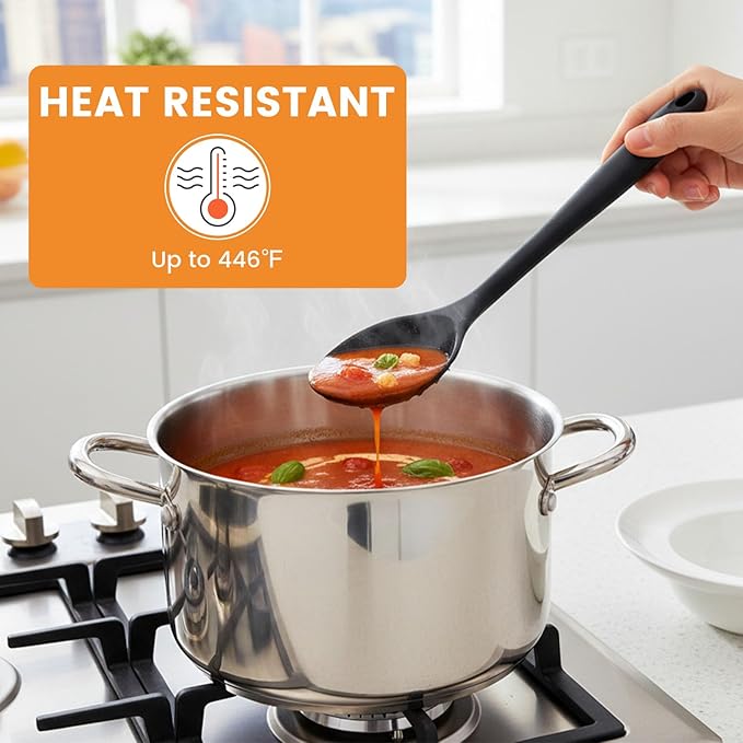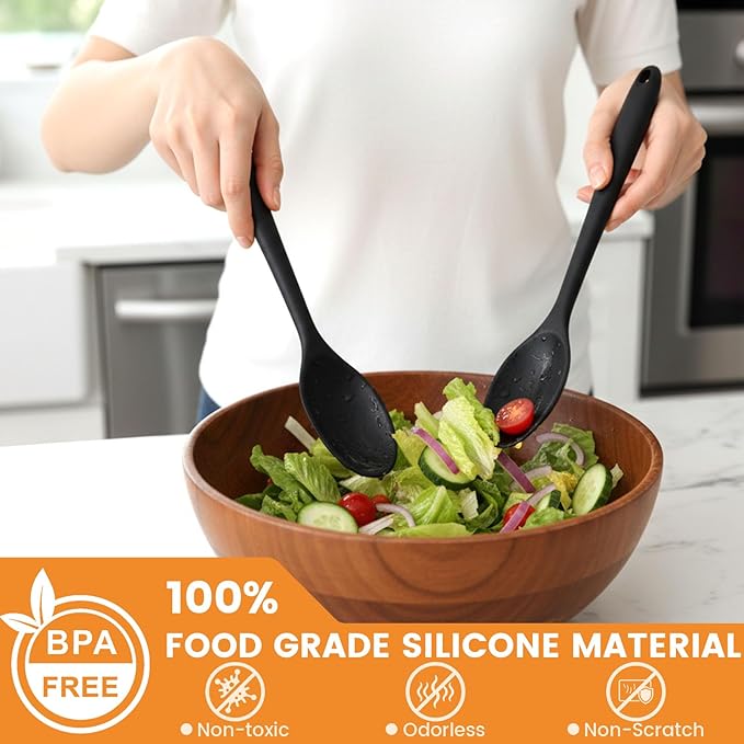 HAKSEN Silicone Spoons for Cooking, 4PCS 10.8 Inch Nonstick Kitchen Serving Spoons, Heat Resistant Silicone Cooking Utensils Set for Stirring, Mixing, Baking, Dishwasher Safe