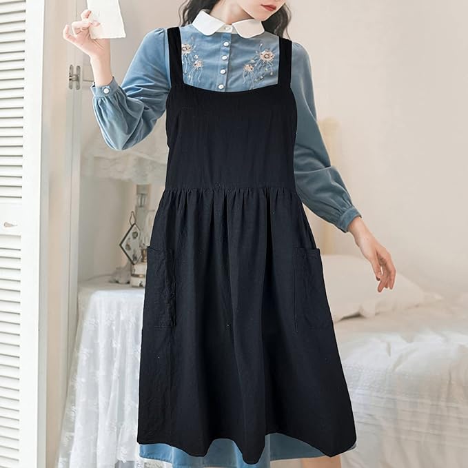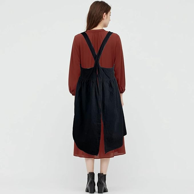 Uaussi Cotton Linen Apron Cross Back Work Apron for Women with Pockets Pinafore Dress X Cross Halter Apron for Chef Gardening