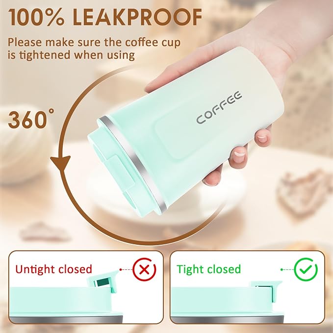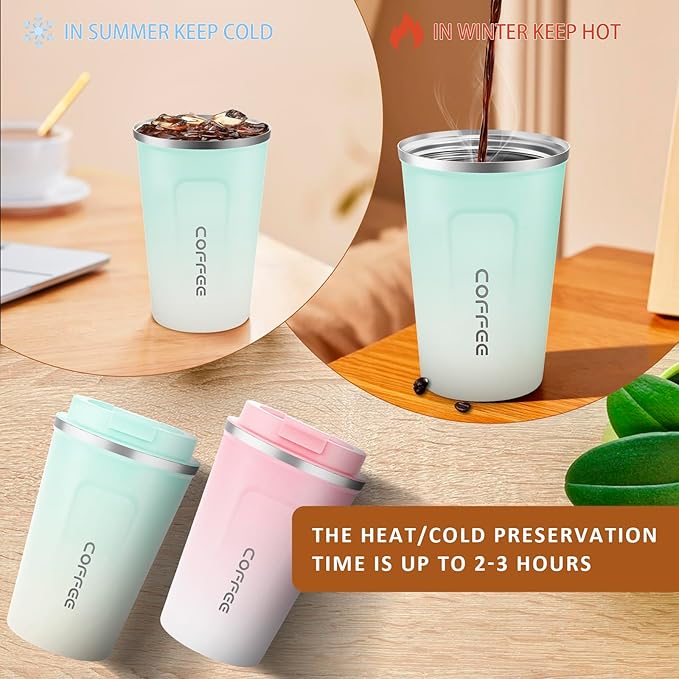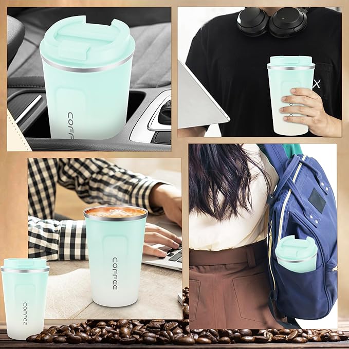 CS COSDDI 12 oz Stainless Steel Vacuum Insulated Tumbler - Coffee Travel Mug Spill Proof with Lid - Coffee Cups for Keep Hot/Ice Coffee,Tea and Beer (blue-white380ML)