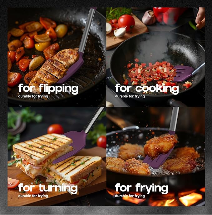 Silicone Spatula Set - Turner Spatulas Silicone Heat Resistant 600°F - Slotted & Solid Spatula for Cooking Fish, Eggs, Pancakes Flipper – Spatulas for kitchen use – Berry