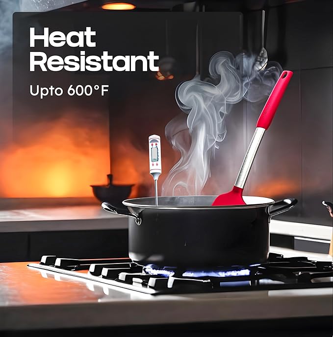 Silicone Spatula Set - Turner Spatulas Silicone Heat Resistant 600°F - Slotted & Solid Spatula for Cooking Fish, Eggs, Pancakes Flipper – Spatulas for kitchen use – Red