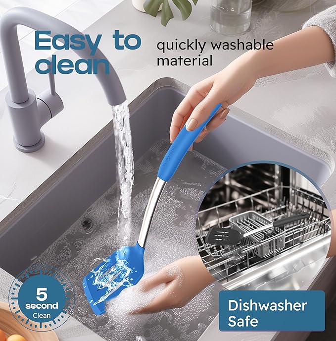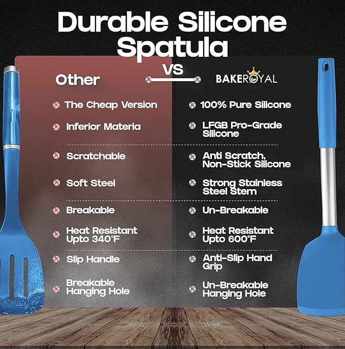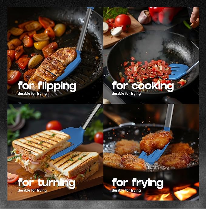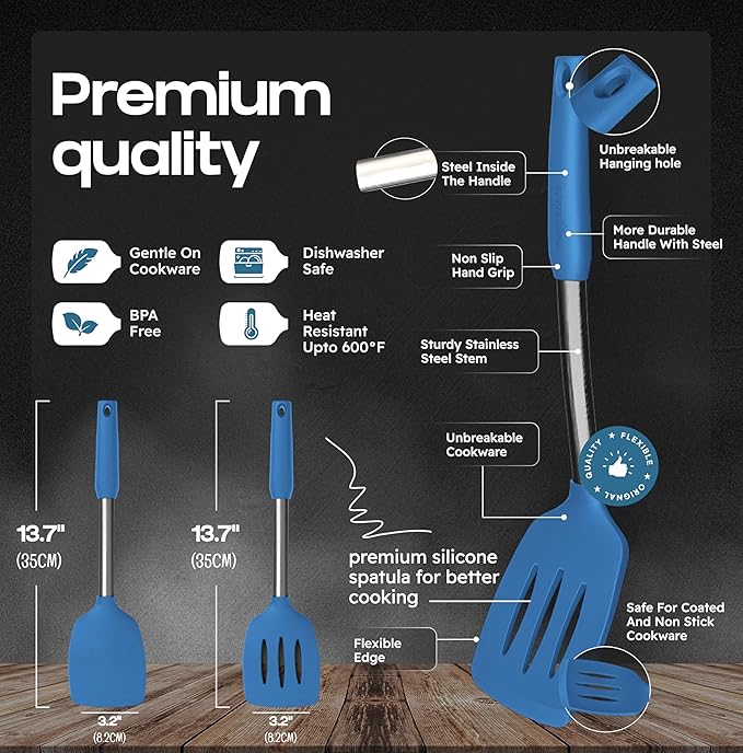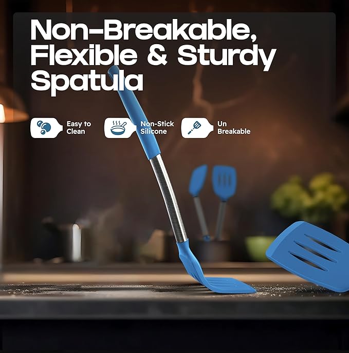 Silicone Spatula Set - Turner Spatulas Silicone Heat Resistant 600°F - Slotted & Solid Spatula for Cooking Fish, Eggs, Pancakes Flipper – Spatulas for kitchen use – Blue