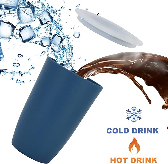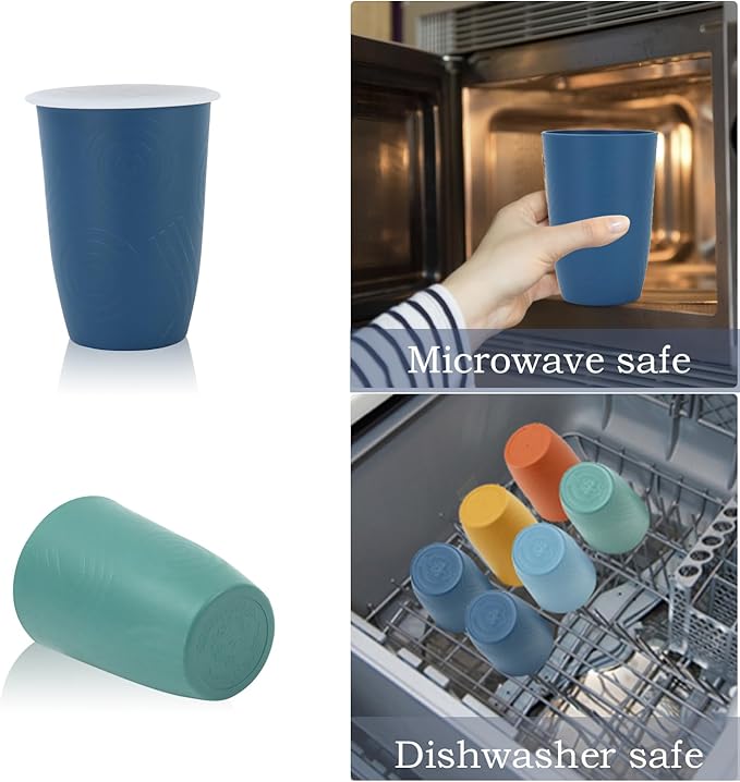 Homienly 16 OZ Wheat Straw Cups for Kitchen, Drinking Cups with Lid Set of 6, Unbreakable Cup Set Reusable, Stackable Water Tumblers (Recommend Fill Volume 12 OZ) - Colorful