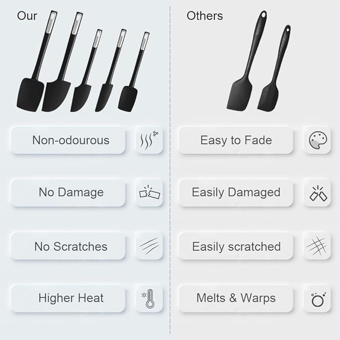 About This 1. High Quality: Our 5-piece silicone set is supported by high quality 100% food-grade silicone material, no-slip, lead-free,... Read more