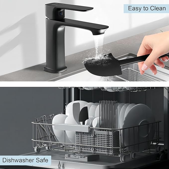Premium Silicone Spatula Set, JXWING Flexible Heat Resistant Non-slip Handle Baking Cooking Rubber Spatulas, Black