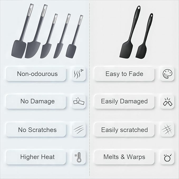 About This 1. High Quality: Our 5-piece silicone set is supported by high quality 100% food-grade silicone material, no-slip, lead-free,... Read more