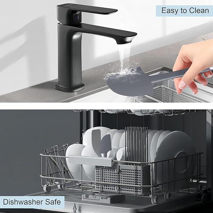 Premium Silicone Spatula Set, Flexible Heat Resistant Non-slip Handle Baking Cooking Rubber Spatulas, Grey