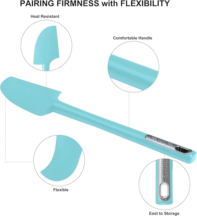Premium Silicone Spatula Set, JXWING Flexible Heat Resistant Non-slip Handle Baking Cooking Rubber Spatulas, Aqua Sky