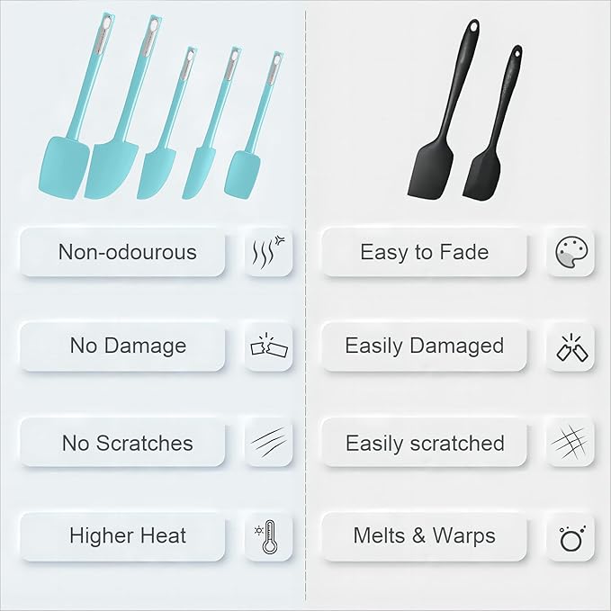 About This 1. High Quality: Our 5-piece silicone set is supported by high quality 100% food-grade silicone material, no-slip, lead-free,... Read more