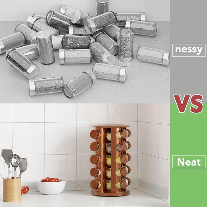 About This COMPACT – Our spice rack has a narrow profile even though it holds 20 jars. It only measures... Read more