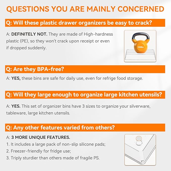 About This 【LARGER SIZES】With 3 different sizes, our 8 pack clear drawer organizers could hold more gadgets, large and long... Read more