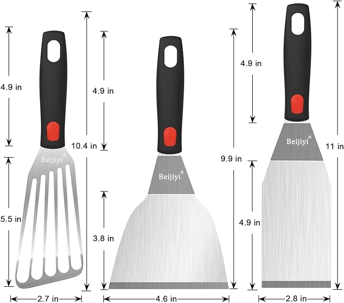Beijiyi Stainless Steel Spatula Set, Heavy Duty Small Metal Spatula for Cooking Cast Iron Skillet with Silicone Handle - Griddle Grill Kitchen Spatula Flipper for Pancake, Fish, Smash Burger and Egg