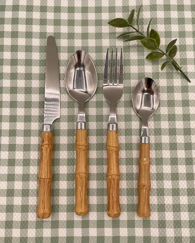 About This NATURALISTIC BAMBOO eating utensils includes 4 forks, 4 knives, 4 tablespoons, and 4 teaspoons Upgraded DURABLE construction, designed... Read more