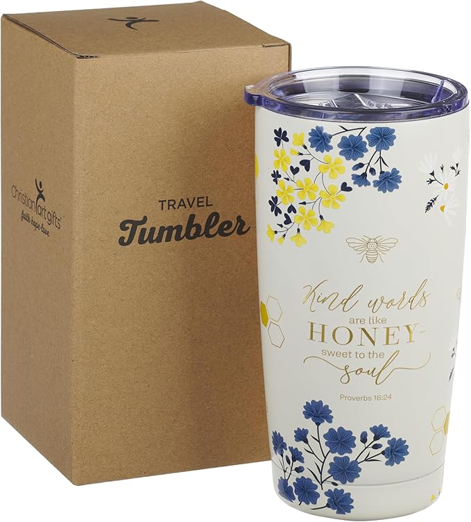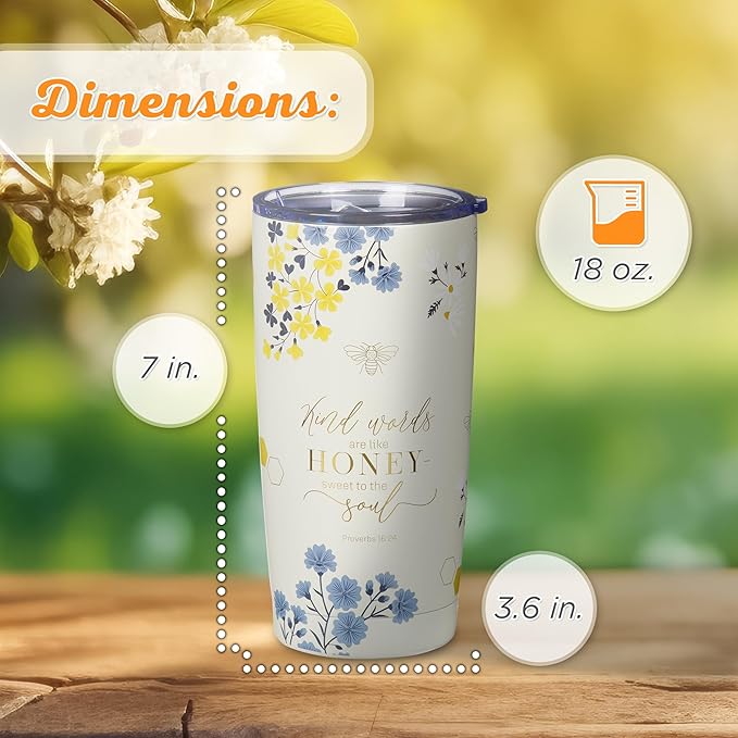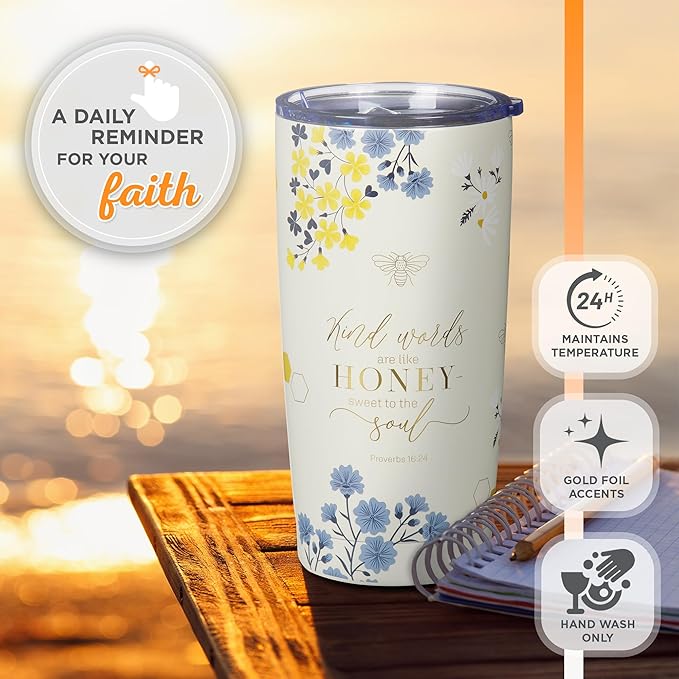About This Encouraging Gift for Ladies: This faith-inspired large capacity reusable travel mug for women features Scripture from Proverbs 16:24... Read more