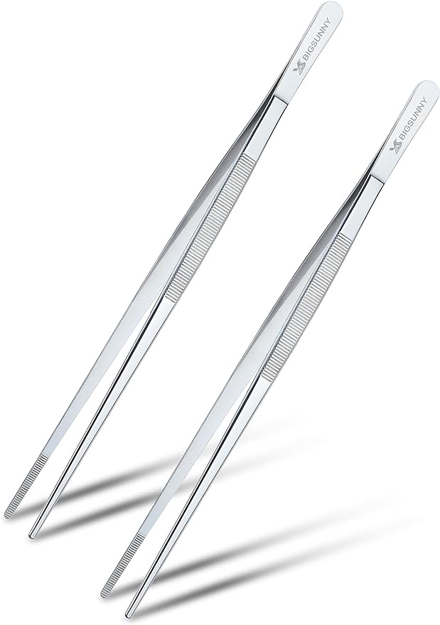 MSY BIGSUNNY 10 Inch Kitchen Food Tweezers Fine Stainless Steel Tweezer Tongs, Multi-function Kitchen Serving Tongs - Set of 2