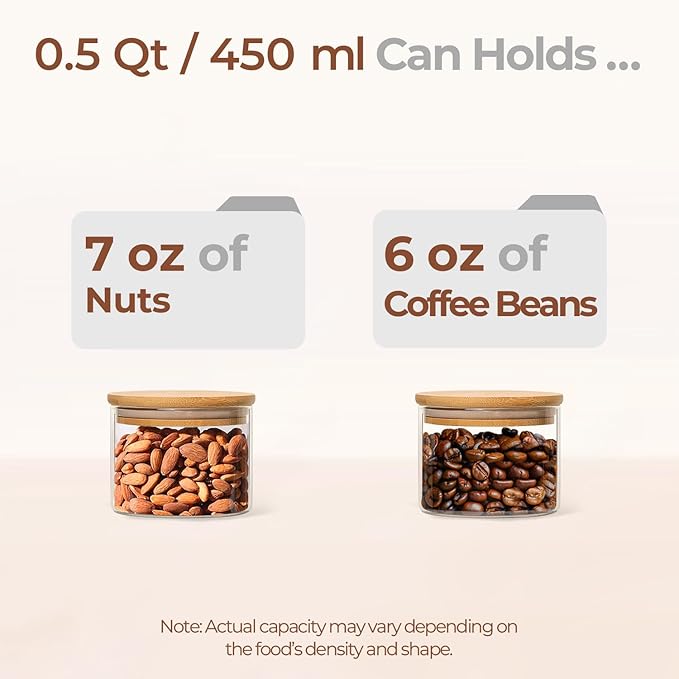 ComSaf 0.5 Qt Glass Food Storage Jars Set of 6, Clear Glass Storage Containers with Lids, Pantry Organization Jar, Spice, Blooming Tea, Coffee, Cookie and Sugar Container, Small jar Set for Kitchen