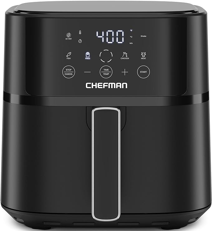 Chefman Air Fryer – 6 QT Compact Airfryer for Quick & Easy Meals in Minutes, Features Hi-Fry Technology for Extra Crisp, Touchscreen Controls with 4 Presets, Nonstick & Dishwasher Safe Basket - Black