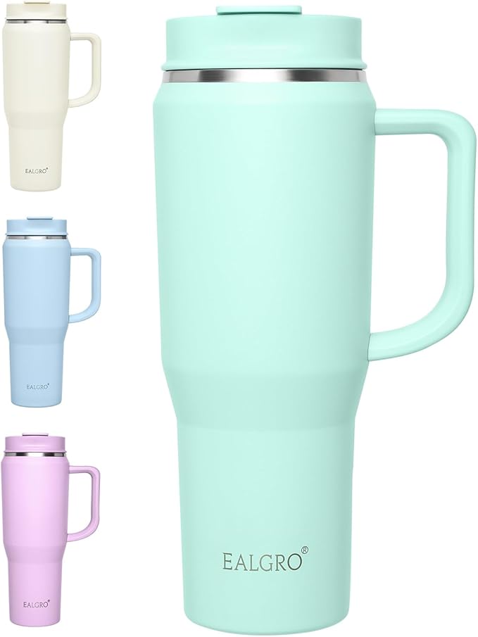 About This INSULATED TUMBLERS: EALGRO 40 oz tumbler with handle are made with double-walled vacuum food-grade stainless steel, our hot... Read more