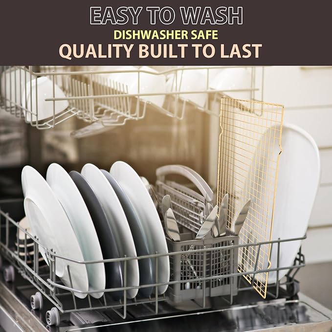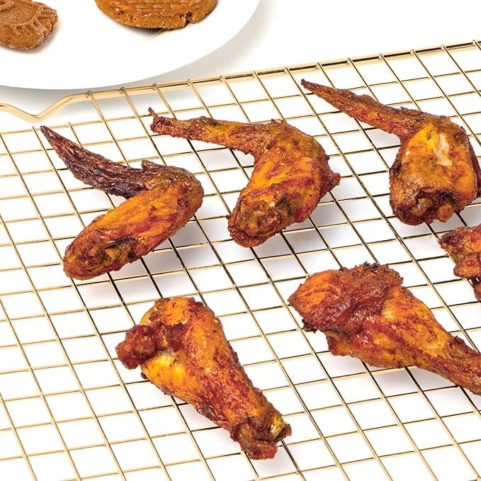 BRIOUT Cooling Rack for Baking, 16x10 Inches Baking Rack, Thick Wire Cookie Rack for Cooking, Roasting, Grilling, Drying, Oven Safe, Fits Half Sheet Pan, Gold