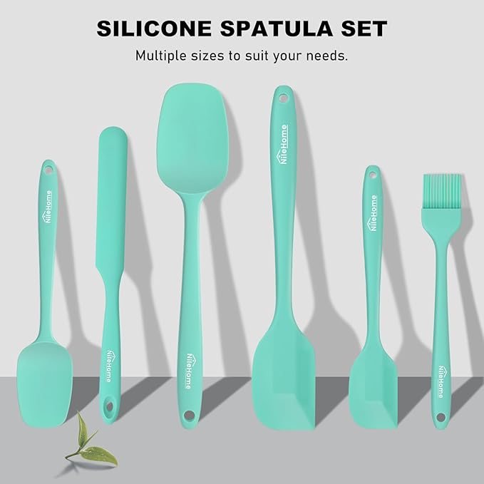 NileHome Silicone Spatula Set, 6 Pcs Food Grade Kitchen Utensils with Silicone Brush Heat Resistant Dishwasher Safe BPA-Free Rubber Spatula for Scraping, Baking, Cooking, Mixing, Turquoise