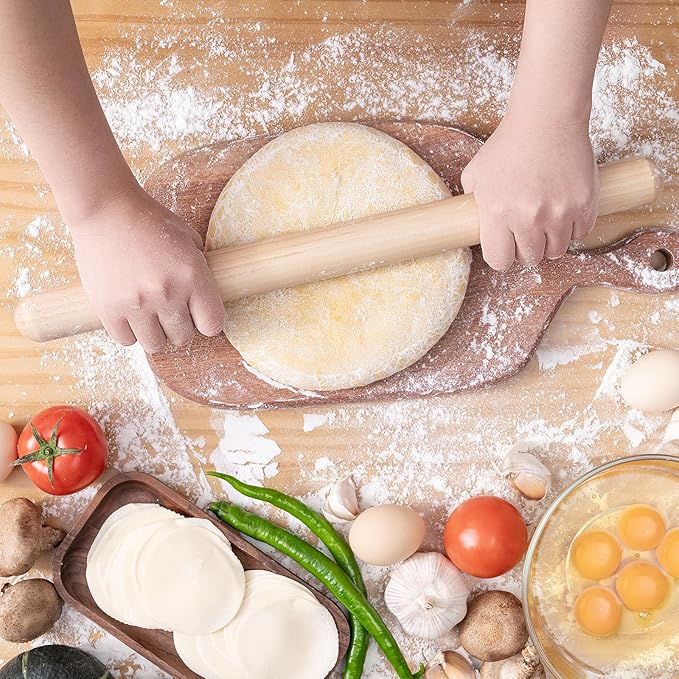AISOSO French Rolling Pin, 17.7 Inches Wood Rolling Pins for Baking, Extra Long Classic Wooden Dough Roller for Fondant Pizza Pie Crust Cookie Pastry, Kitchen Baking Essentials, Light Yellow