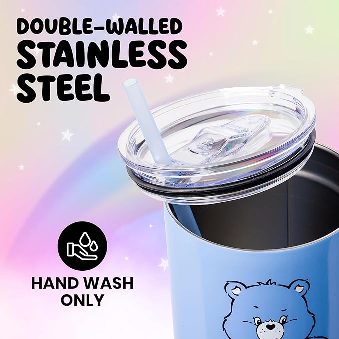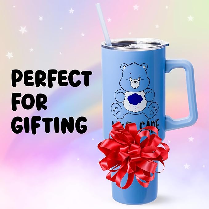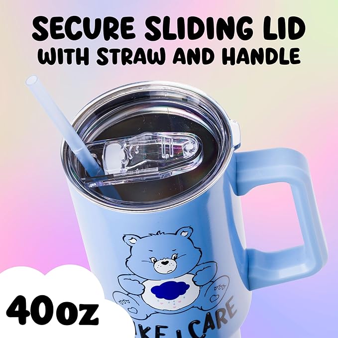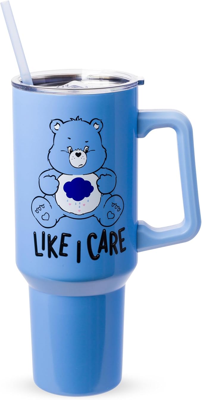 Silver Buffalo Care Bears Grumpy Bear Like I Care Stainless Steel Tumbler with Handle and Straw, Fits in Standard Cup Holder, 40 Ounces