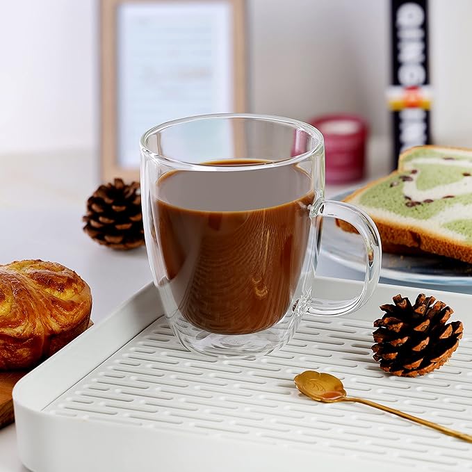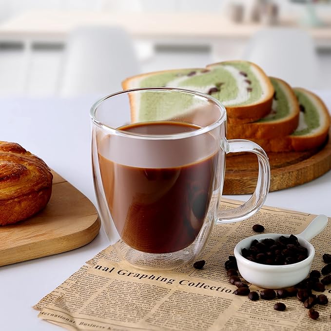 CNGLASS Large Glass Coffee Mugs 17oz,Double Walled Insulated Clear Coffee Cups with Handle,Clear Espresso Mugs for Cappuccino,Latte,Tea Bags,Hot and Cold Beverages,Set of 4