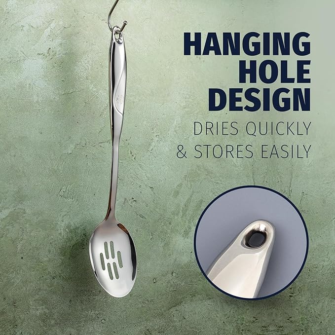 Zulay Kitchen Stainless Steel Slotted Spoon - 15” Large Cooking & Serving Spoon with Ergonomic Handle - Durable, Rust-Proof, Heat-Resistant & Dishwasher Safe Kitchen Utensil for Cooking and Buffets