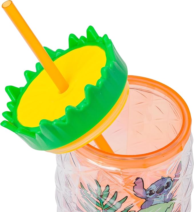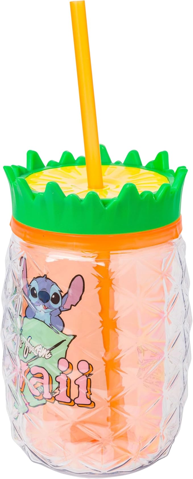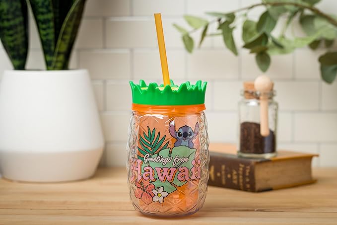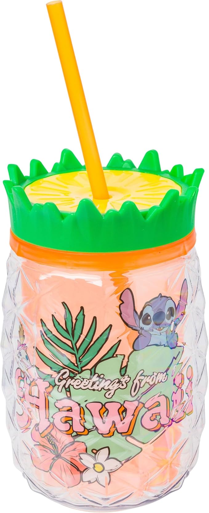 Silver Buffalo Disney Lilo and Stitch Greetings From Hawaii Featuring Scrump Pineapple Shaped Double Wall Tumbler, 16 Ounces