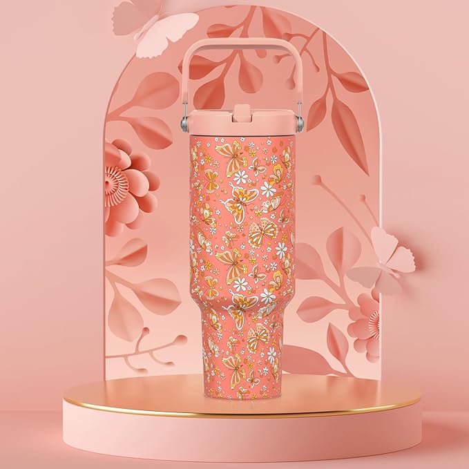 40 oz Tumbler with Handle and Straw, Vacuum Insulated Tumblers with Flip Straw and Top Handle, Reusable Insulated Cup for Home, Outdoors, Leakproof, Fits in Cup Holder, Cold for 30 Hours