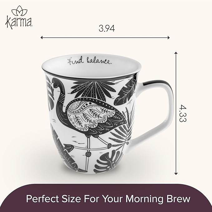 Karma Gifts 14 oz Black and White Boho Mug Flamingo - Cute Coffee and Tea Mug - Ceramic Coffee Mugs for Women and Men