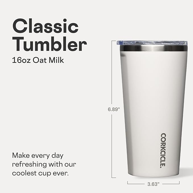 Corkcicle Classic Tumbler - Keeps Drinks Cold for 9 Hours & Hot for 3 - Triple-Insulated Stainless Steel - Holiday Tumbler Gift - 16 oz - Oat Milk